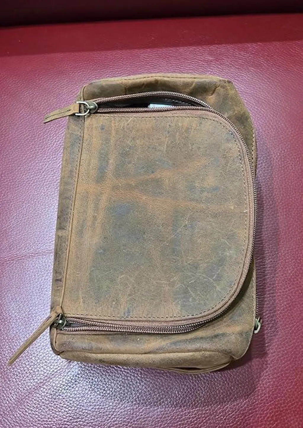 Large Leather Toiletry Bag Dopp Kit Antique