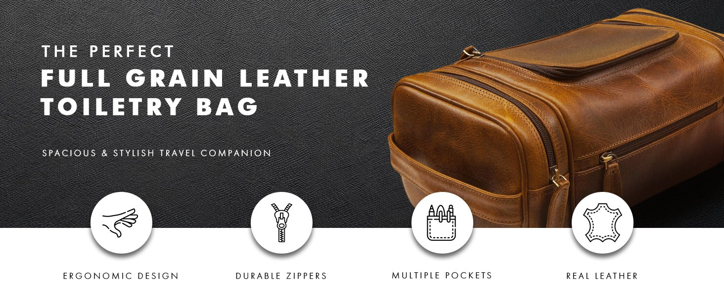 Durable and Stylish XL Leather Toiletry Bag